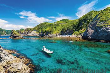 貴重なエダサンゴも群生し、豊かな黒潮の影響により、南国の季節回遊魚も周遊することからシュノーケリングや磯遊びにも最適。国内で25番目のジオパークに登録されています。