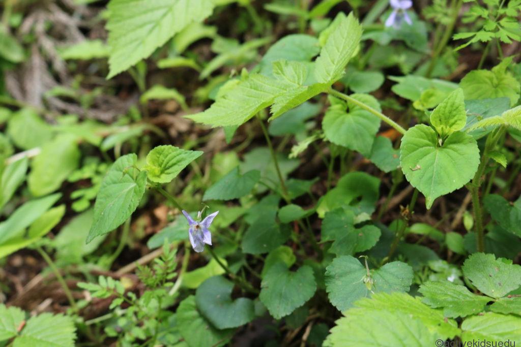 日本で60種類ほど見られるスミレの中でも最もよく見られるものの一つで、花の色は、空色がかかった淡い紫色で唇弁には濃い紫色の筋が入っています。