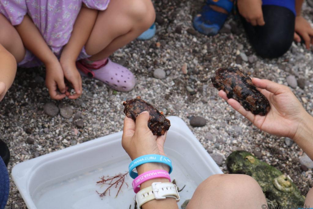 ムラサキクルマナマコ、イソクロナマコ、イソナマコなどに出会えます。