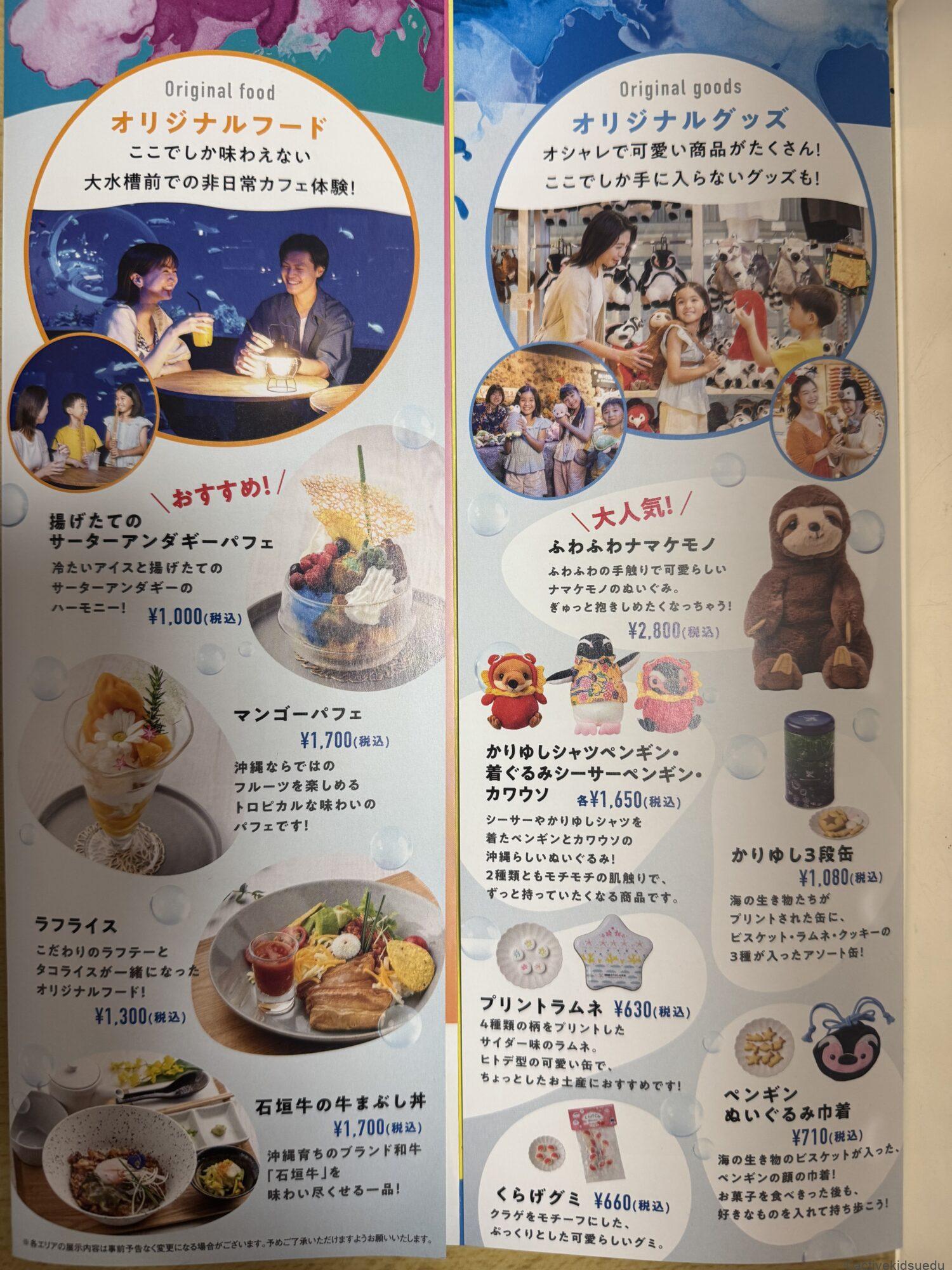 A. はい。大水槽前で味わえるカフェでは、沖縄グルメを取り入れた特製メニューが楽しめます。