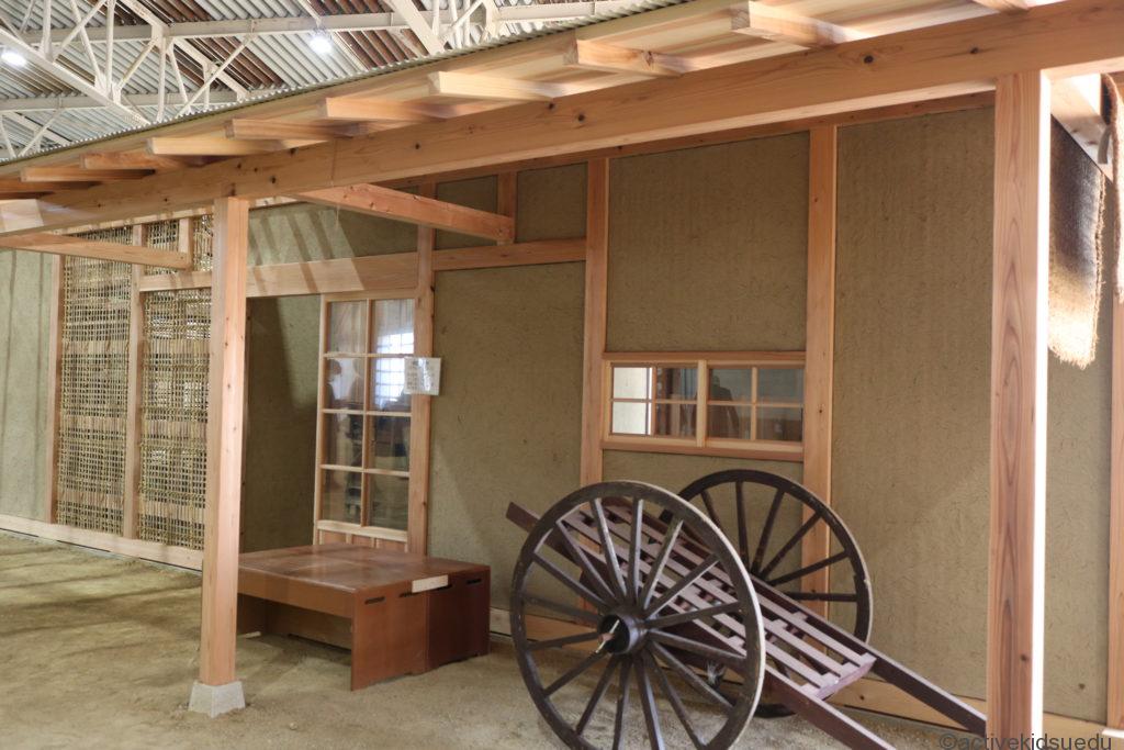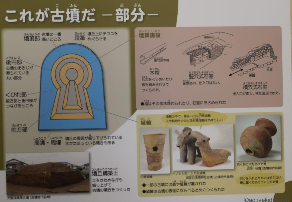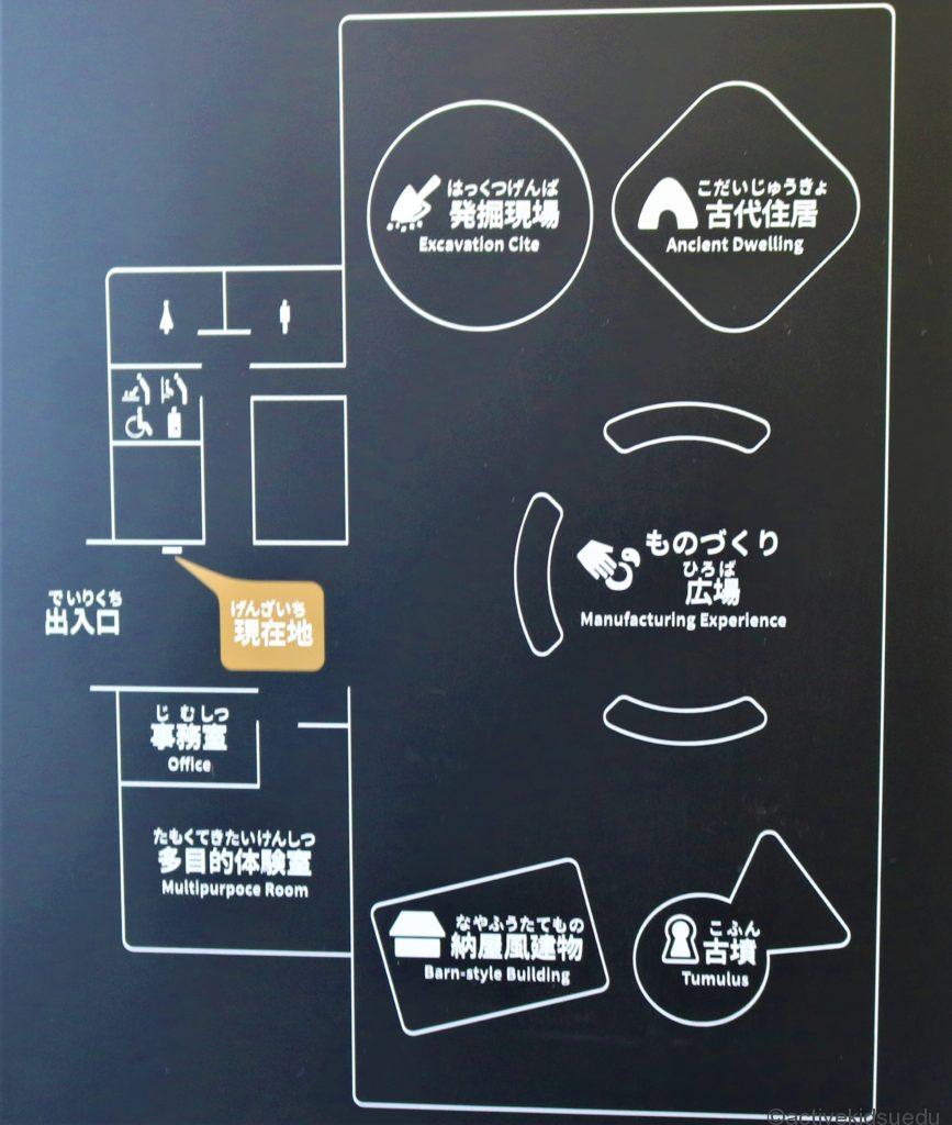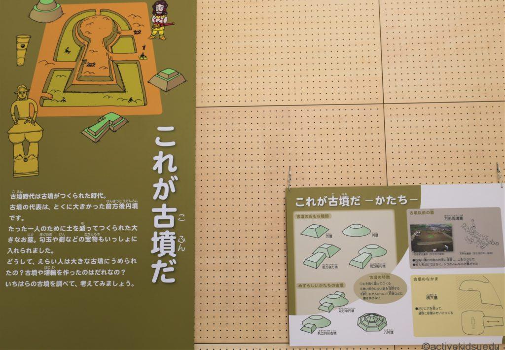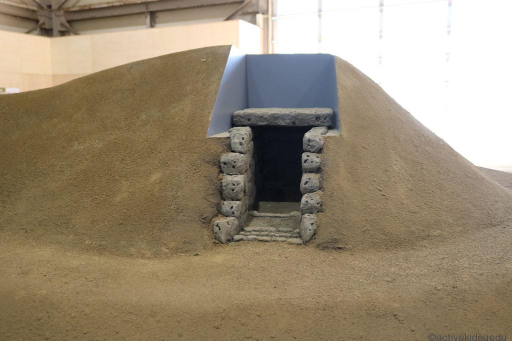 左手には、奥には実物を1/5に再現した古墳と、中に入って昔の農家の納屋の様子を体験できるエリアが見えます。