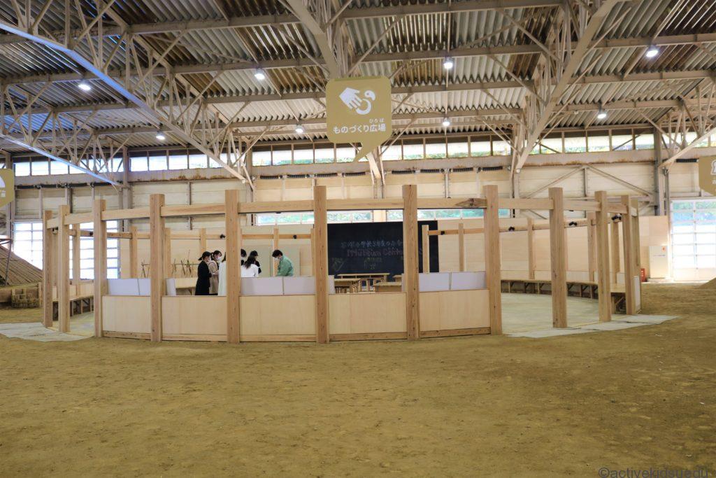 歴史体験の入り口を入るとまずは、貝輪作り、勾玉作り、泥めんこ作りなどができる「体験コーナーが」。
