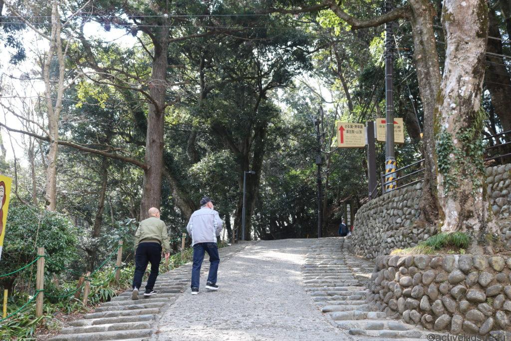舗装された道でぬかるんだ道を歩く可能性がほとんどないので、防水仕様でないスニーカーなどでもハイキング登山は可能ですが、山頂まで標高600メートルを登ることを考えると手持ちのもののなかからなるべくしっかりした装備を選んで登るのがおすすめです。