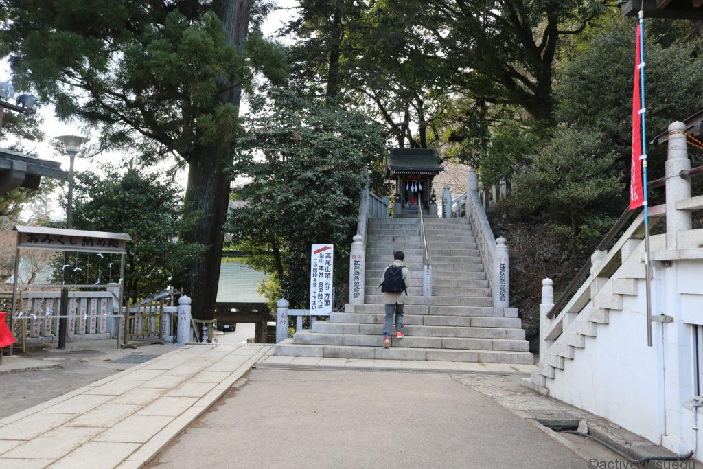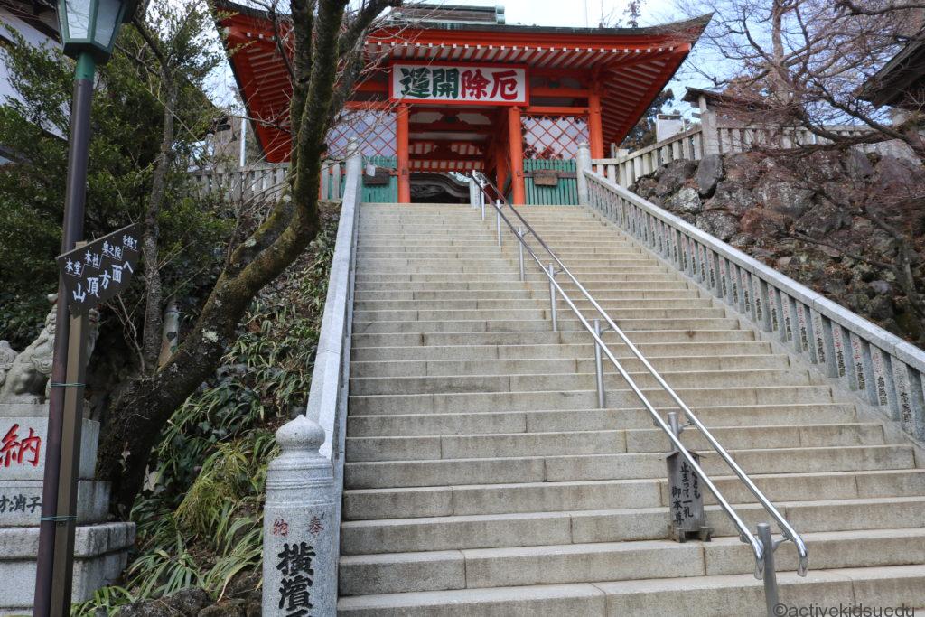 男坂の段数は人の煩悩の数と同じ108段。階段を1段上がるごとに煩悩がひとつずつ消えていくとも言われています。