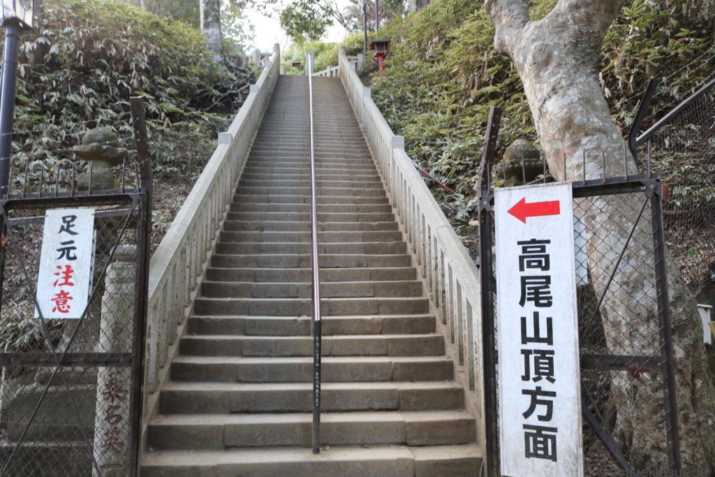 高尾山の山頂へは、ご本堂の右手から階段を上りさらに上へ。