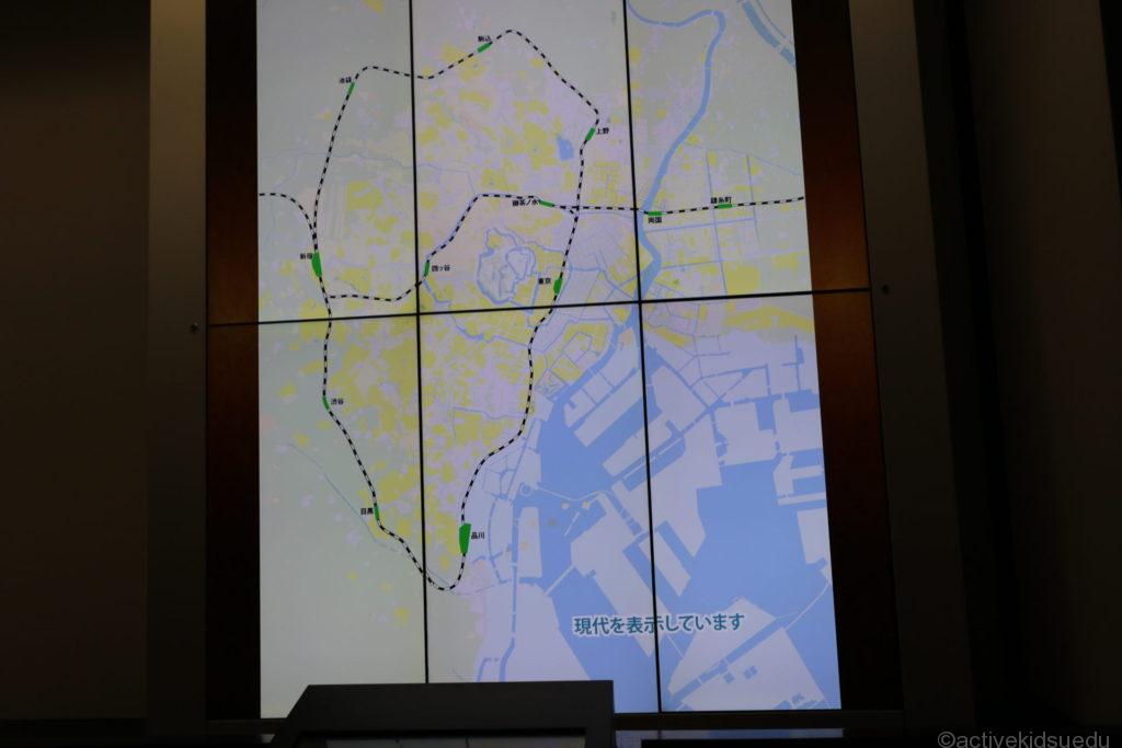 橋を渡るとその前には江戸城の周辺の街並みを再現した2つのジオラマがあります。