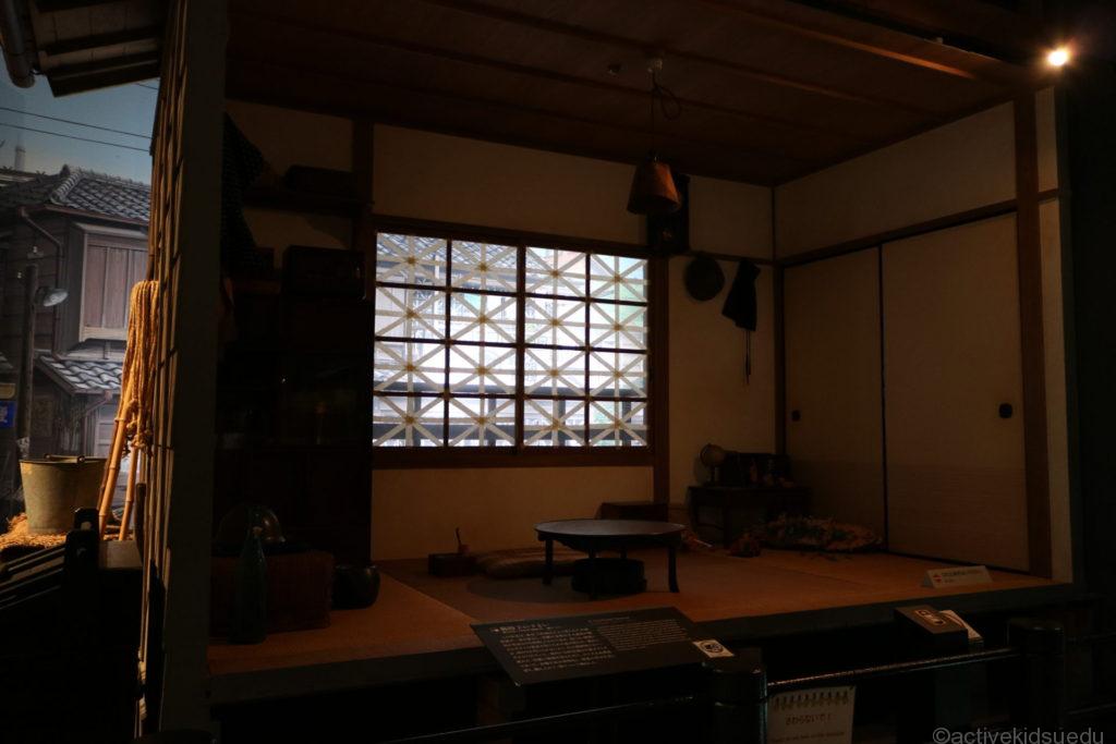 江戸の庶民の生活を再現した人形が設置された町屋の様子です。